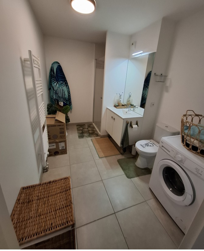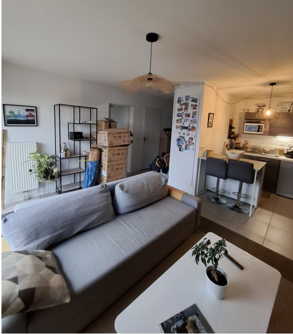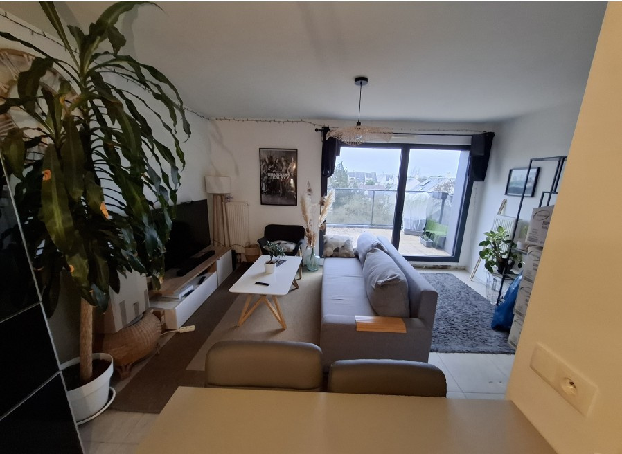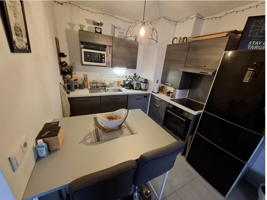 Bel appartement récent situé au 3ème et dernier étage d'une copropriété sécurisé de 2019 comprenant: entrée avec placard, cuisine équipée ouverte sur salon, chambre, salle d'eau avec wc, balcon terrasse exposée plein sud, sans vis à vis garage à vélo, place de parking